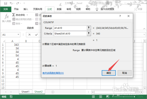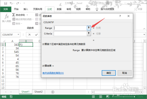 然后点击第一个引用符号,点击选择Sheet1的数据区域,按回车键。