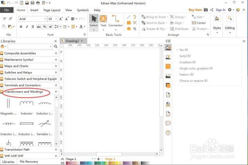 打开变压器和绕组符号库;