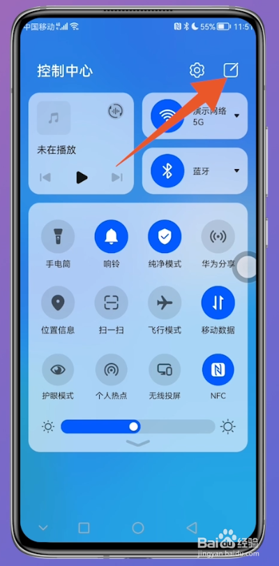 在华为手机的本家儿页面,从页面右上偏向下滑动,进入新页面。