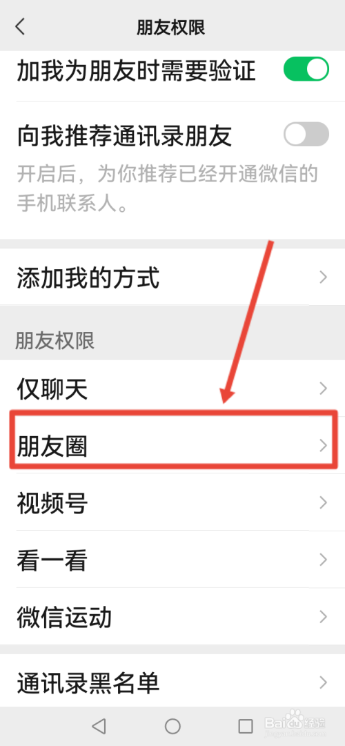 在伴侣权限中找到朋友圈选项,打开这个选项