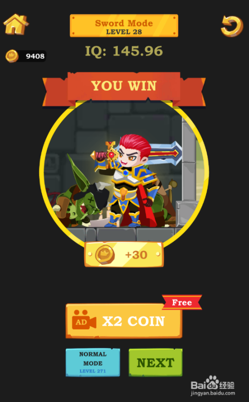 红发小英雄顺遂打开了门,弹出YOU WIN动画,如图。这样就过关了。