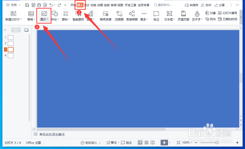 打开WPS演示文稿,依次点击“插入”-“图片”。