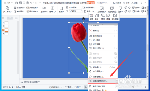 将图片设置当作透明后,鼠标右键菜单中点击“设置对象格局”。