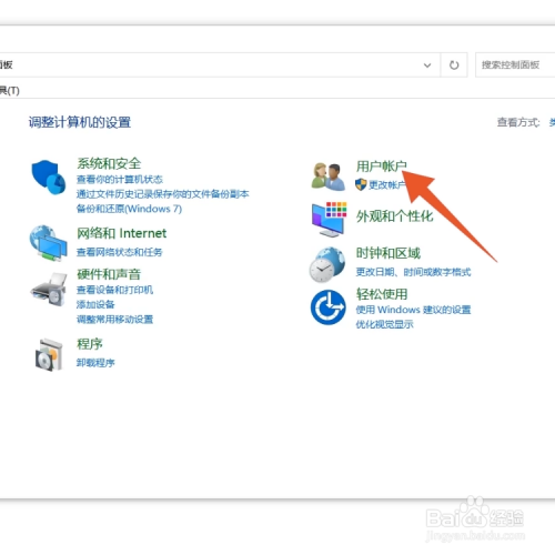 进入遐想电脑节制面板页面后,点击页面中的【用户帐户】。