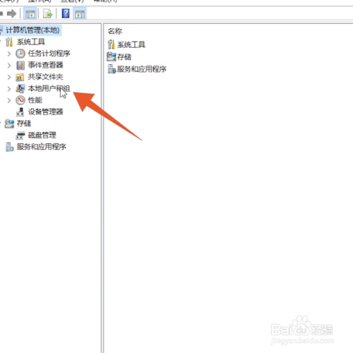 打开计较机办理页面后,点击左侧的【当地用户和组】。
