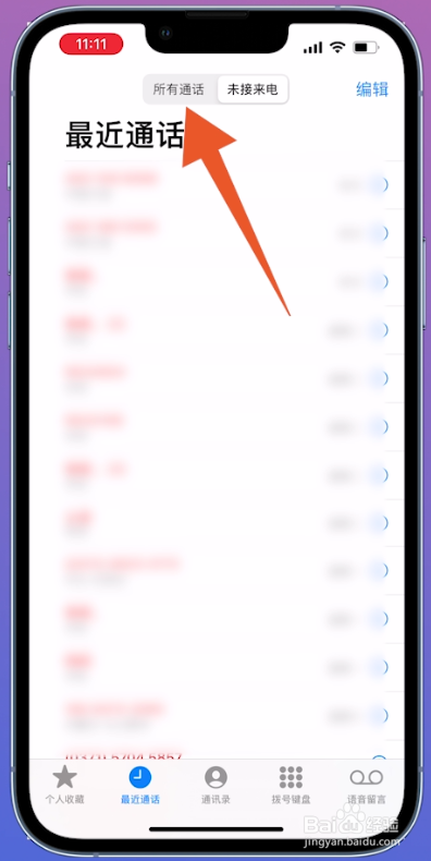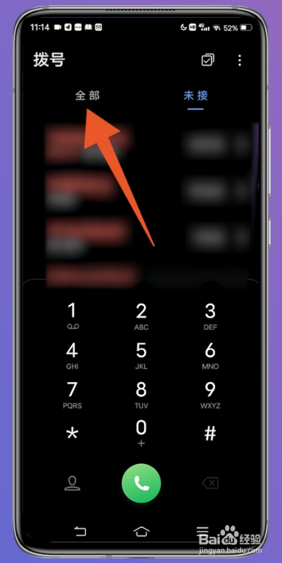 打驾总阅拓荒比来通话页面后,点击页面上方的【所有通话】。