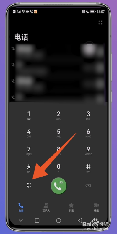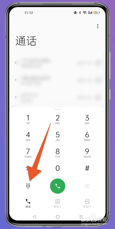 打开通话页面后,点击拨号键盘左下方的下拉图标。