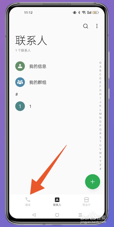 进入OPPO手机拨号页面后,点击页面下方的【通话】。