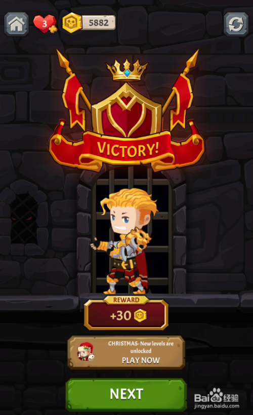 骷髅兵顺遂被覆灭,弹出VICTORY通关画面,如图。这样就过关了。