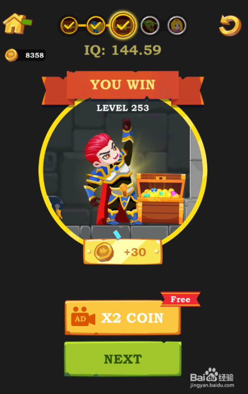 红发少年景功获得宝箱,弹出YOU WIN动画,如图。这样就过关了。