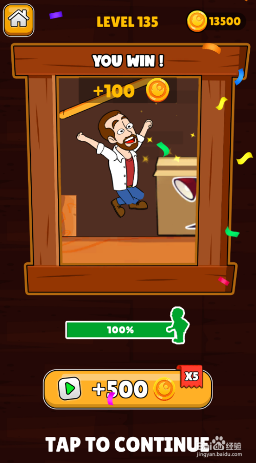 中年大叔乐成得到家具,弹出YOU WIN!通关画面,如图。这样就过关了。