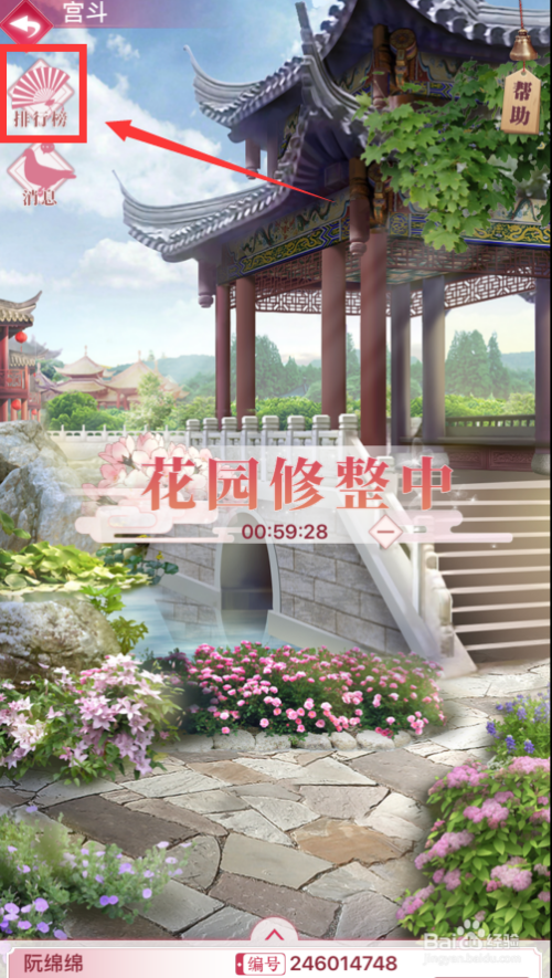 竣事以后,花圃会进入休整,时间为一个小时摆布,耐烦等候恢复,一天可以到场4次宫斗。此时点击左上角的排行榜。
