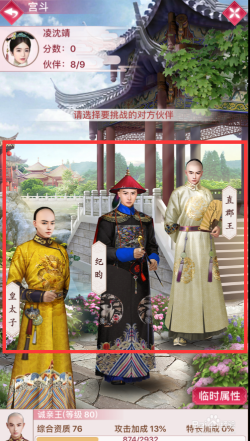 选择对方要挑战的伙伴,可以点击右下角的姑且属性,增长战斗力。