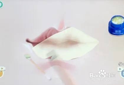 第二步:接着在唇部周围涂上绿色的药膏,嘴巴上起小水泡的处所涂上白色药膏,然后利用棉签涂抹匀称即可;