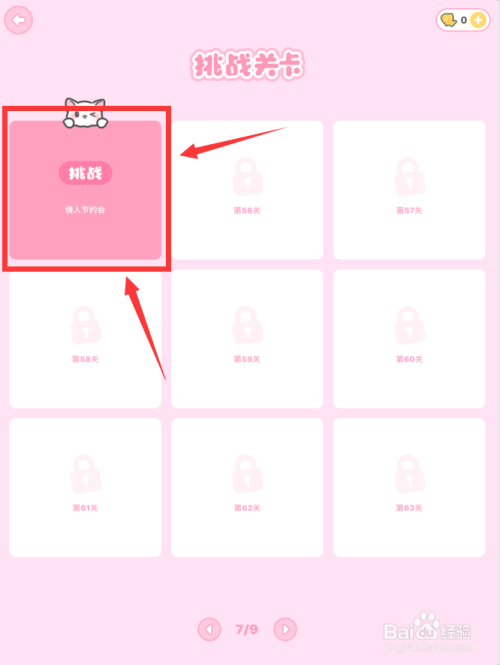 打开游戏,进入挑战关卡界面,点击第55关恋人节约会。