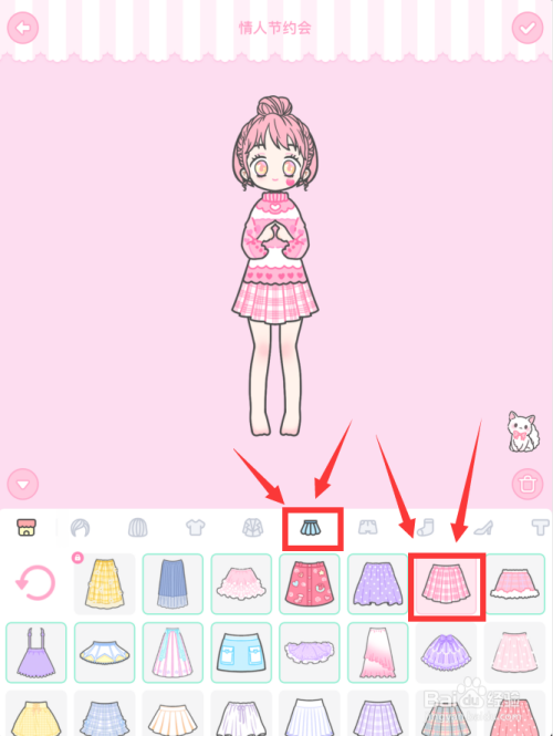 点开裙子选项卡点击,第1排倒数第2个粉色小裙。