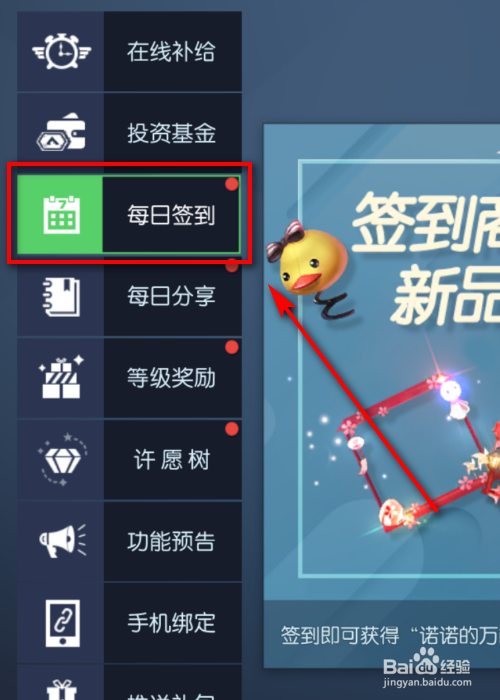 界面切换,细心不雅察,在左侧栏点击逐日签到图标。