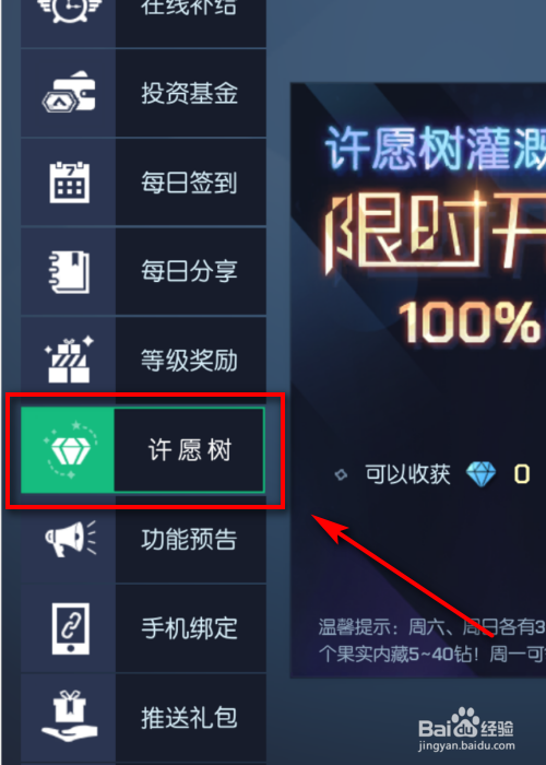 界面切换,点击左侧栏的许愿树图标。