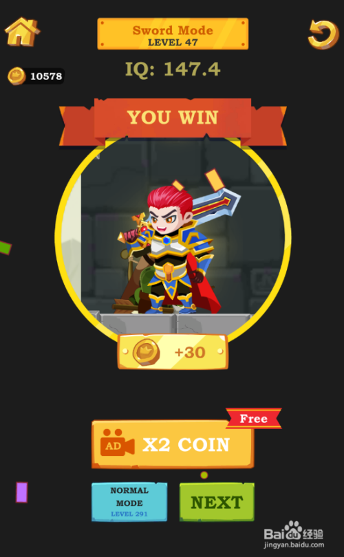 红发小英雄拿到宝剑顺遂打开了门,弹出YOU WIN动画,如图。这样就过关了。
