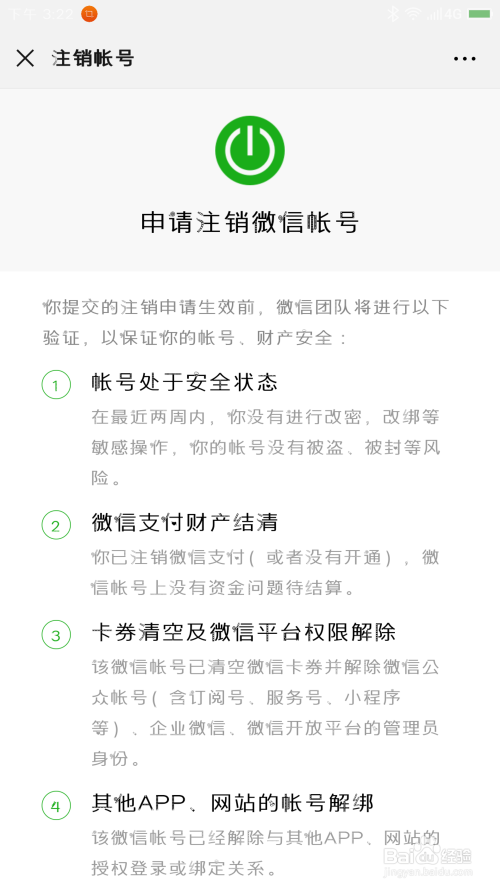 当我们的账号需要刊出时,微信团队会查抄账号是否处于安全状况、产业是否结清、卡券是否清空以及与其他APP网站的账号举行解绑。