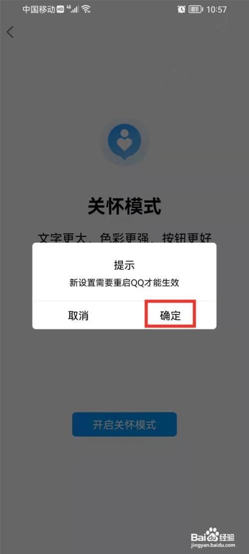 在弹出的窗口选择“确定”,即可进入眷注模式。
