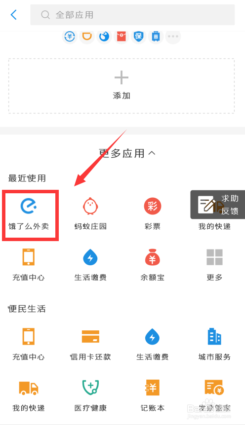 界面切换,细心不雅察,点击饿了么外卖图标。