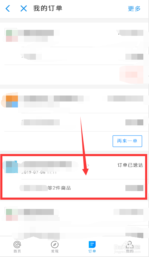 在本身的订单内,找到对应的订侧肥单,点击进入。