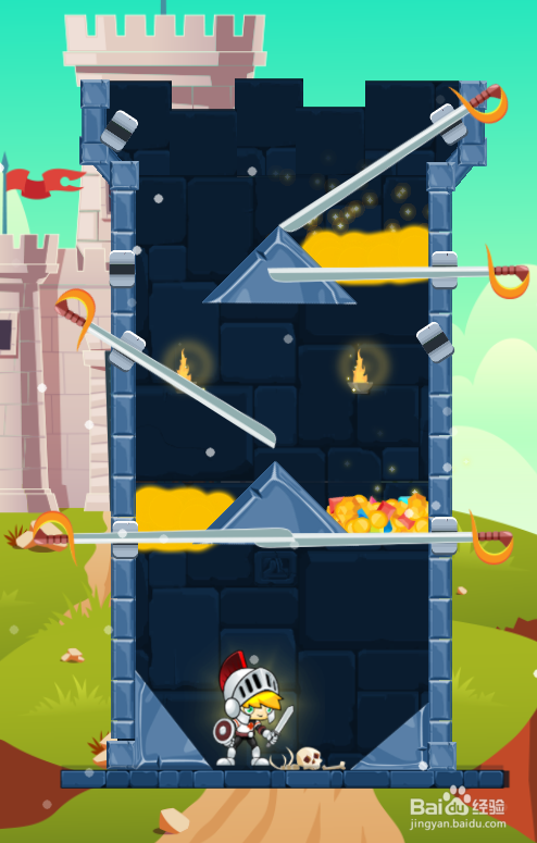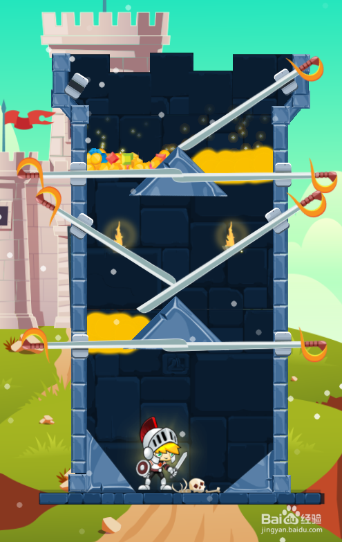工具/原料一加10 Pro安卓Android 12Braveheart1.0.0方法/步骤1这一关的使命是获得顶部的宝藏,内里共有八个插销,勇士站在底部,环境如图。 2点击移除宝藏左侧的斜插销,如图。 3点击移除宝藏下面的横插销,如图。 4点击移除宝藏右边的斜插销,如图。 5点击移除宝藏下面的横插销,如图。 6勇士乐成获得宝藏,弹出VICTORY动画,如图,这样就通关了。END