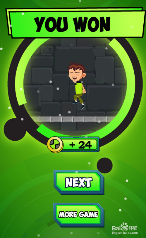 绿衣少年顺遂获得宝藏,弹出绿色配景的动画,如图,这样就过关了。
