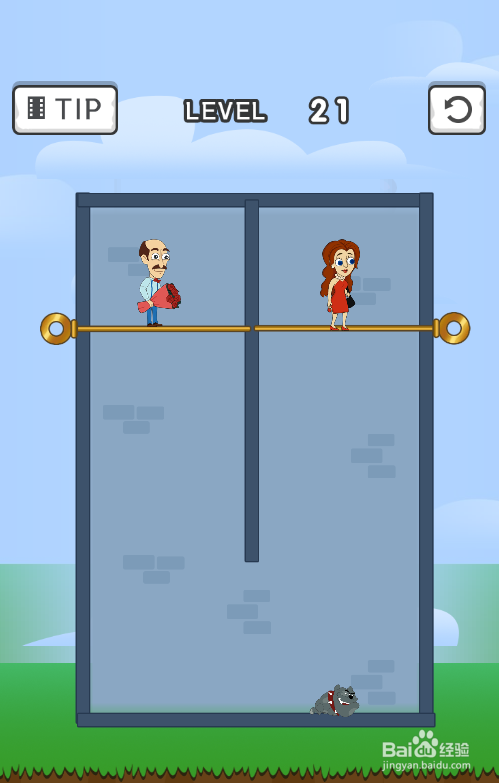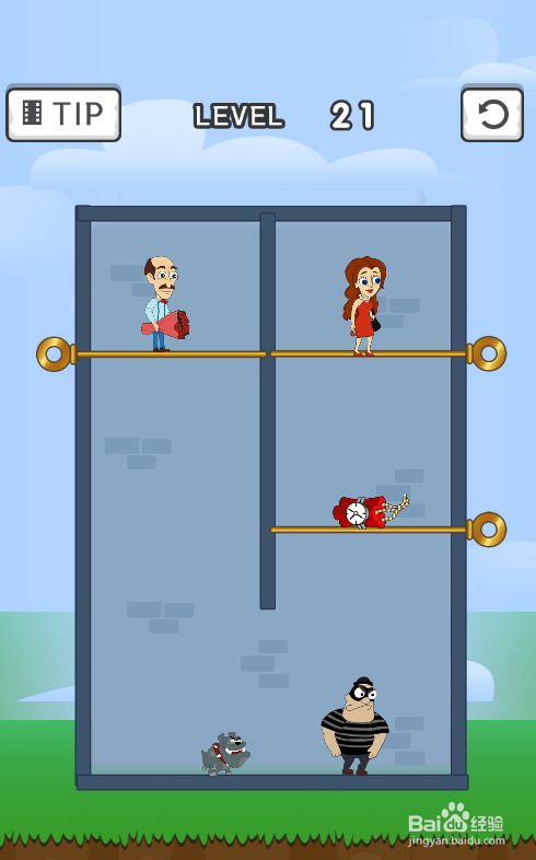 工具/原料一加10 Pro安卓Android 12帮帮谁人女士1.0.0方法/步骤1这一关的使命是营救炸药上侧的女士,内里共有四个横插销,男士站在比特犬上侧,环境如图。2点击取下比特犬下面的横插销,如图。3点击取下炸药下面的横插销,如图。4点击取下男士下面的横插销,如图。5点击取下女士下面的横插销,如图。6女士顺遂获救,弹出LEVEL COMPLETED画面,如图,这样就通关了。END