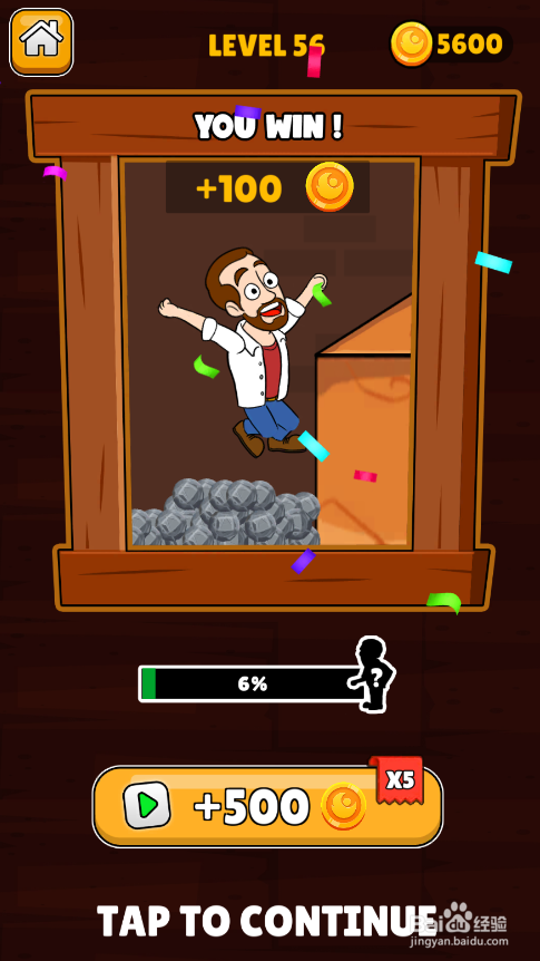 中年大叔乐成得到黄金,弹出YOU WIN画面,如图。这样就过关了。