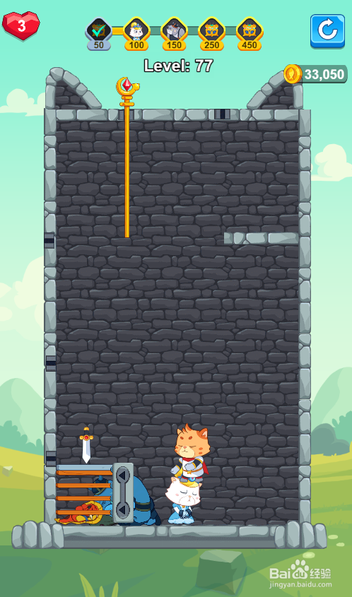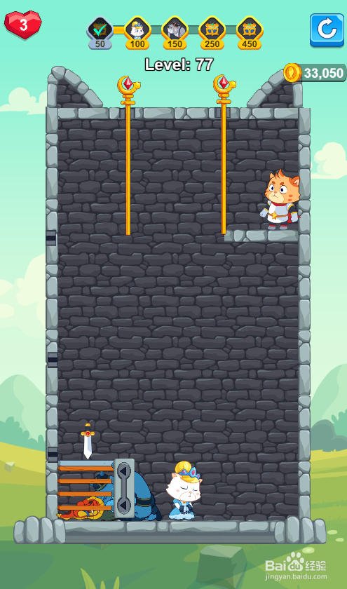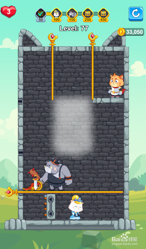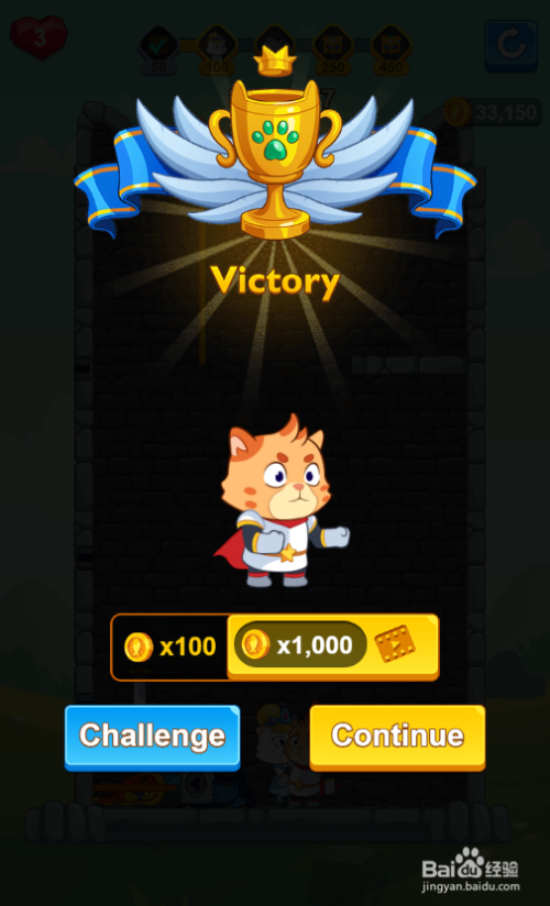 猫公本家儿顺遂获救,弹出奖杯动画,如图,这样就过关了。