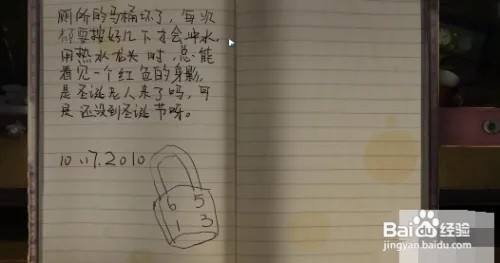 利用刀片划破镜子阁下的绷带,然后获得电池放置到娃娃上获得字母,在厨房池塘阁下的调料瓶根据字母摆列。