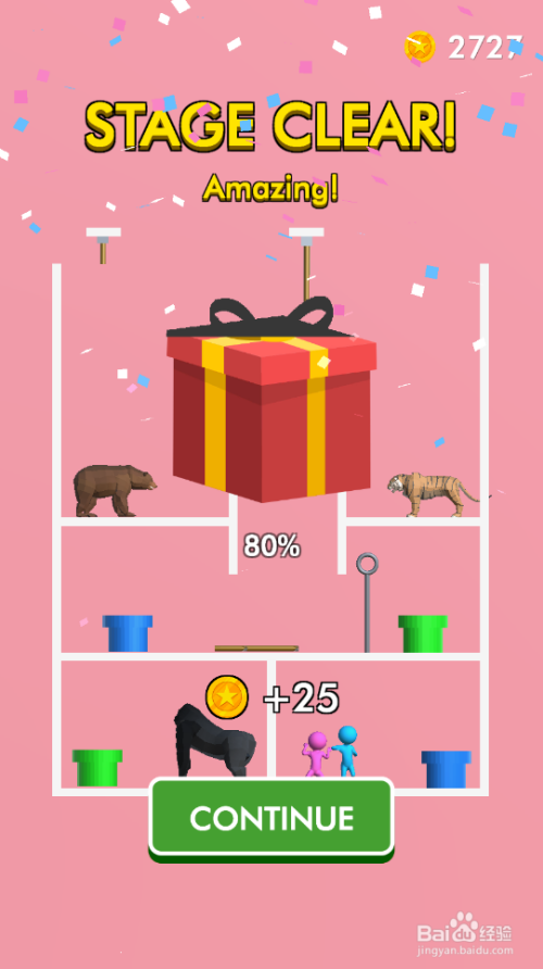 粉色人乐成获救,弹出STAGE CLEAR画面,如图。这样就过关了。