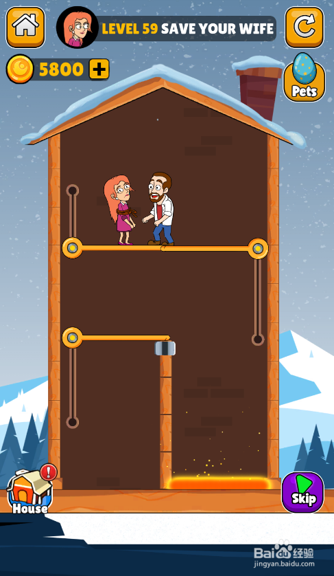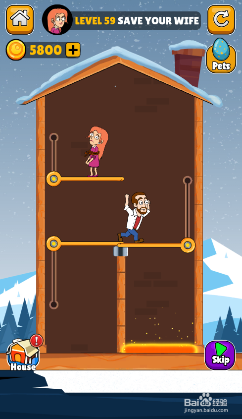这一关的使命是营救顶部被困女本家儿人,男本家儿人站在女本家儿人下侧,熔岩在右侧底部,环境如图。