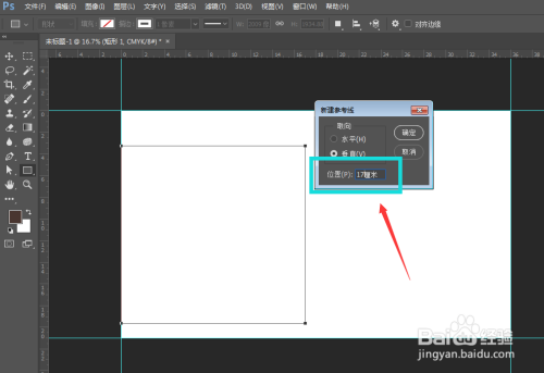 然后创建第二根参考线,第二根参考线是加上2cm的书脊厚度,也就是在19cm处成立