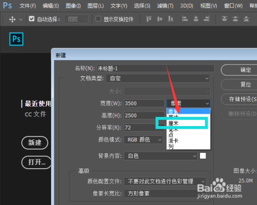 要是我们在PS中成立尺寸,首先要把单元改当作打印单元毫米或厘米