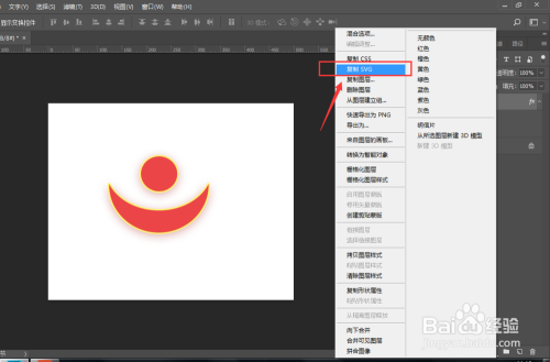 我们选择PS中的这个图层,然后右键打开,选择复制SVG