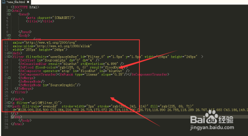 在html代码中找到body标签,然后将适才复制的svg在这里粘贴