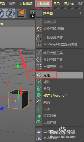 将立方体尺寸适当调小;然后再点击打开克隆图层,调出属性栏