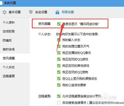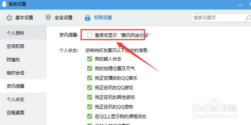 此刻是选中的状况,然后将对勾去失,这样就将QQ资讯封闭失了。
