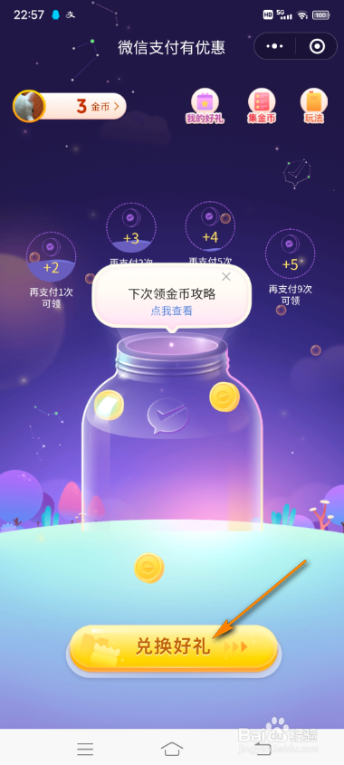 界面跳转,点击兑换好礼。