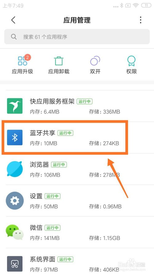 在应用办理界面,找到蓝牙共享图标,点击进入。