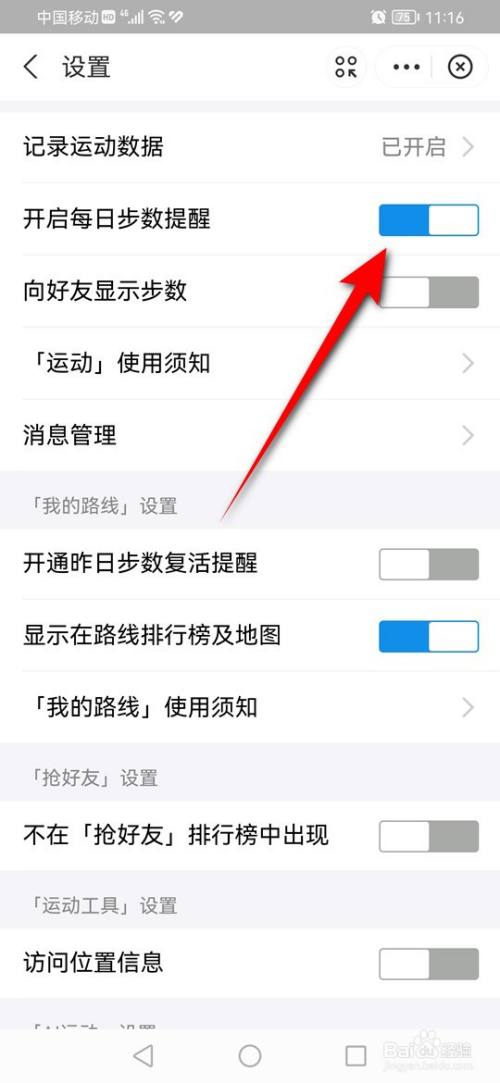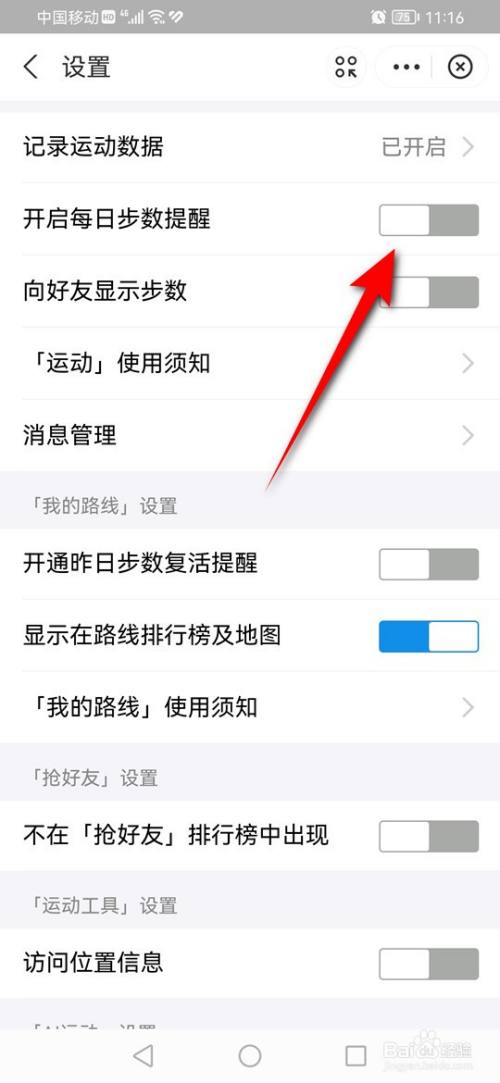 将“开启逐日步数提示”旁的小滑块点暗即可封闭提示。