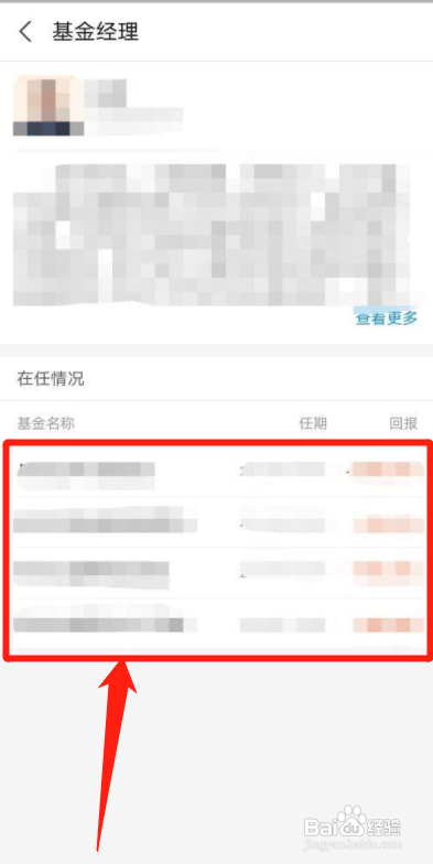 第六步、进入页面后,就可以看到统一个基金司理还办理哪些相干的基金,如下图