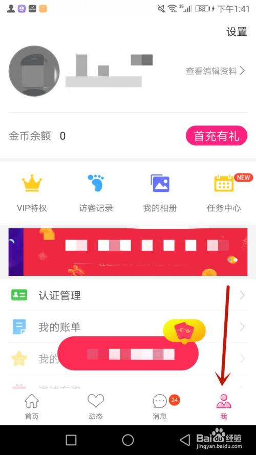 点击界面右下方箭头指标的目的的“我”选项