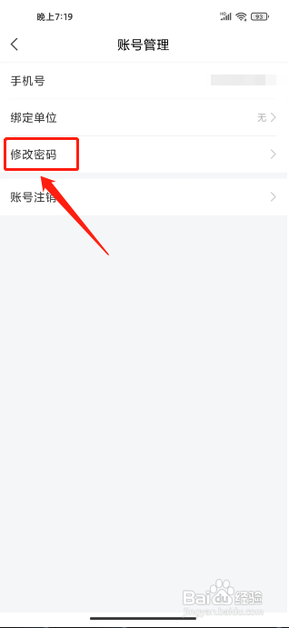 如图所示。本身进入账号办理,点击(修改密码),进入页面中。