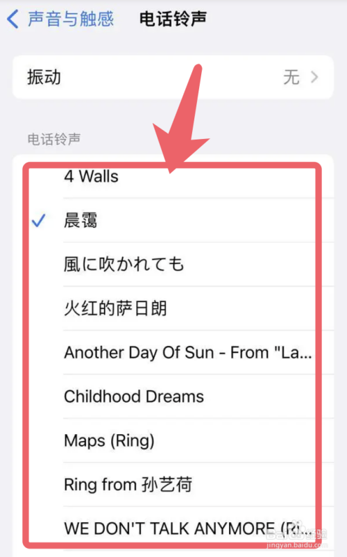 最后我进入设置里边的声音与触感,点击设置本身喜欢的铃声即可。