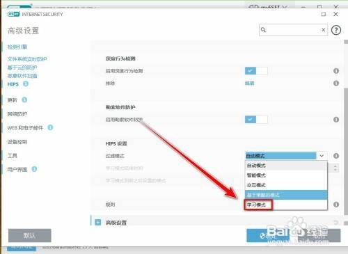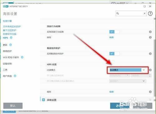 在高级设置窗口中,点击【HIPS】,如图所示