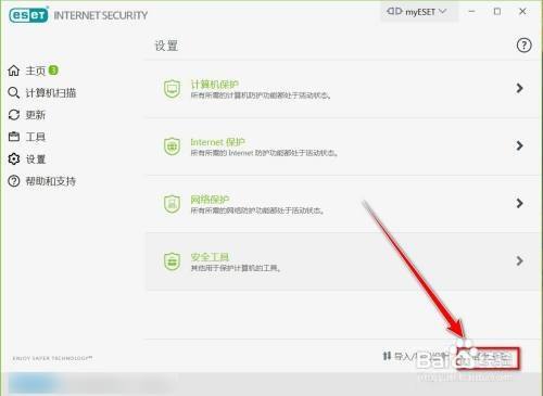 在eset窗口中,点击左侧的【设置】,如图所示